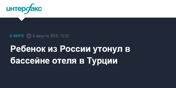 Москва. 6 августа. INTERFAX.RU - Десятилетний россиянин утонул в бассейне отеля на средиземноморском турецком курорте Белек (провинция Анталья), сообщает издание BGN News.