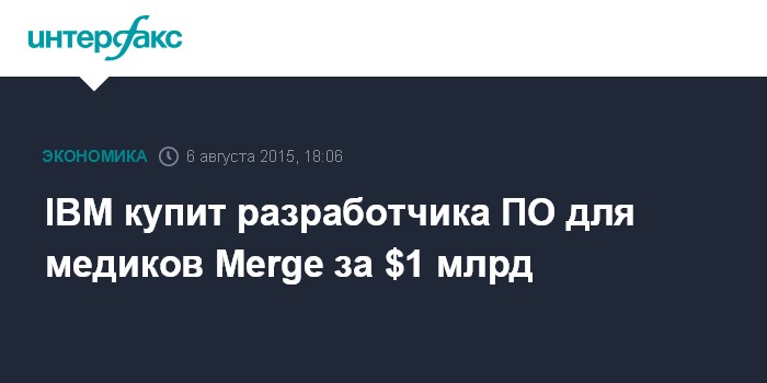Москва. 6 августа. INTERFAX.RU - International Business Machines Corp. (IBM) покупает компанию Merge Healthcare Inc., поставщика решений для сбора, архивирования, просмотра и передачи изображений, за $1 млрд.