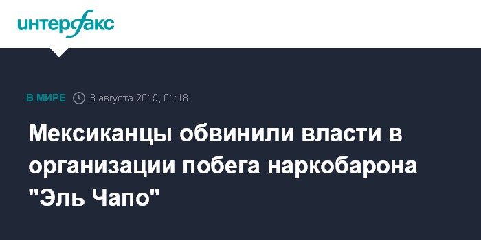 Москва. 8 августа. INTERFAX.RU -Три четверти мексиканцев считают, что коррумпированные чиновники помогли боссу наркокартеля Хоакину Гусману по прозвищу "Эль Чапо" устроить побег из тюрьмы. Такие данные содержаться в опросе компании Parametría, который приводит The Guardian.