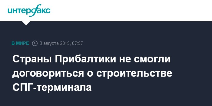 Москва. 8 августа. INTERFAX.RU - Страны Балтии разозлили Еврокомиссию своей неспособностью договориться по вопросу регионального газового терминала. Об этом сказала в интервью порталу Baltic Business Service министр экономики Латвии Дана Рейзниеце-Озола, пишет Postimees.