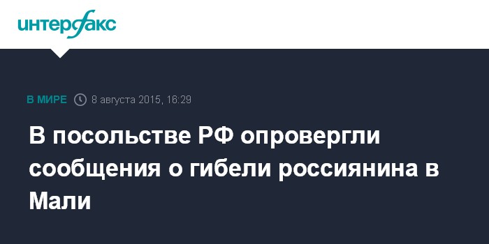 "Мы не подтверждаем эту информацию", - заявил пресс-атташе посольства РФ в Мали Виктор Горелов в телефонном разговоре "Интерфаксу".
