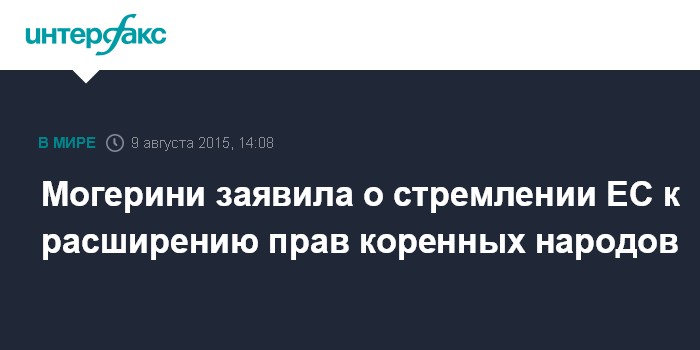 Могерини подтвердила поддержку Евросоюзом Декларации ООН о правах коренных народов. Она отметила, что итоговый документ состоявшейся в сентябре прошлого года Всемирной конференции по коренным народам служит основой для действий на международном и национальном уровнях.