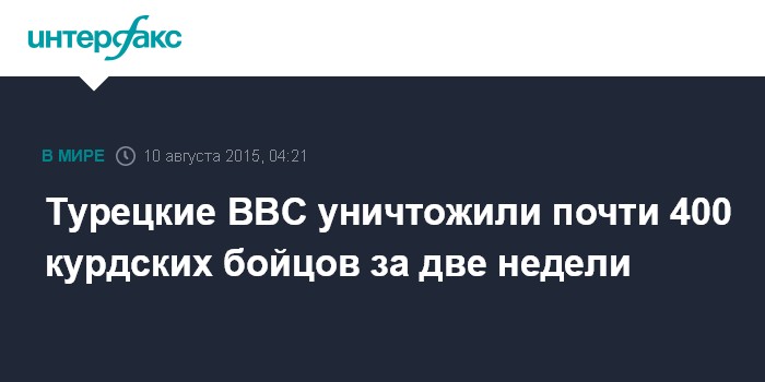 Москва. 10 августа. INTERFAX.RU - Авианалеты турецких ВВС на позиции боевиков Курдской рабочей партии (КРП) в северном Ираке, предпринимавшиеся в течение двух недель, унесли жизни 390 курдов, около 400 поучили ранения, сообщило турецкое агентство новостей Anatolia.
