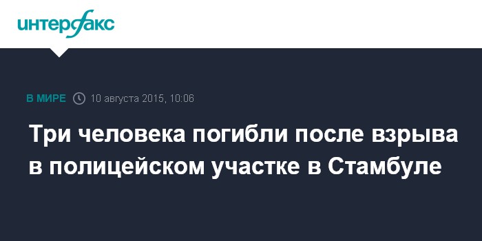 Москва. 10 августа. INTERFAX.RU - Три человека погибли и 10 получили ранения в результате взрыва, произошедшего в понедельник в полицейском участке в Стамбуле, сообщают турецкие СМИ.