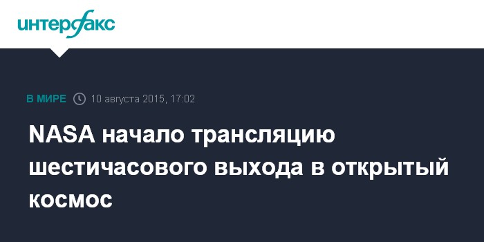 Москва. 10 августа. INTERFAX.RU - На сайте NASA началась прямая трансляция шестичасового выхода в открытый космос членов экипажа МКС. Командир экипажа Геннадий Падалка и бортинженер Михаил Корниенко покинут шлюз в 17:14 по московскому времени, сообщает N+1.