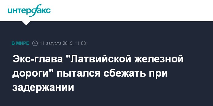 Москва. 11 августа. INTERFAX.RU - Бывший председатель правления госпредприятия "Латвийская железная дорога" Угис Магонис при задержании пытался бежать, свидетельствует имеющаяся в распоряжении агентства BNS информация.