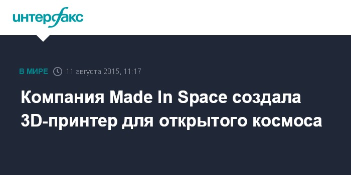 Москва. 11 августа. INTERFAX.RU - Компания Made In Space разработала и успешно испытала 3D-принтер, способный печатать изделия в вакууме в условиях низкой гравитации, сообщает издание N+1 со ссылкой на блог компании.