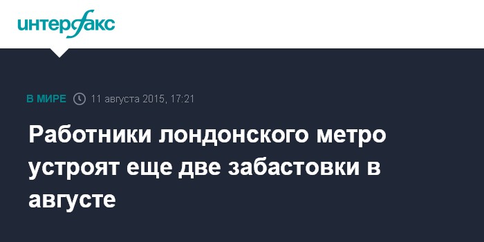 Москва. 11 августа. INTERFAX.RU - Работники лондонского метрополитена продолжают серию протестов против "ночного метро", требуя повышения оплаты и улучшения условий труда после его ввода. До конца месяца они планируют еще две круглосуточные забастовки - 25 и 27 августа, передает "Би-би-си".