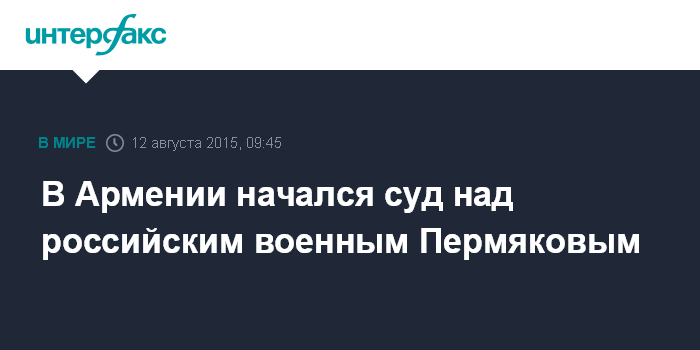 Москва. 12 августа. INTERFAX.RU - В Гюмрийском гарнизонном суде Южного военного округа РФ начался процесс по делу российского военнослужащего Валерия Пермякова по обвинению в дезертирстве и хищении оружия.
