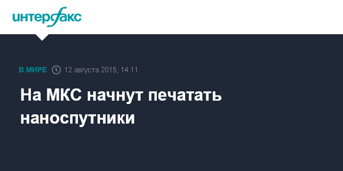 Москва. 12 августа. INTERFAX.RU - Компании NanoRacks и Made In Space объявили о начале совместной работы над проектом производства небольших спутников прямо на борту Международной космической станции, сообщает издание N+1 со ссылкой на блог Made In Space.