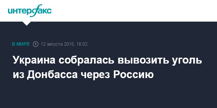 Москва. 12 августа. INTERFAX.RU - Кабинет министров Украины согласовал возможность вывоза угля из зоны проведения силовой операции на подконтрольную Киеву территорию через Россию, сообщил журналистам министр энергетики и угольной промышленности Украины Владимир Демчишин.