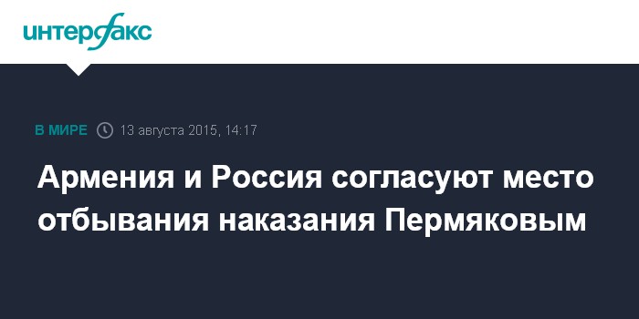 Армения и Россия согласуют место отбывания наказания Пермяковым
