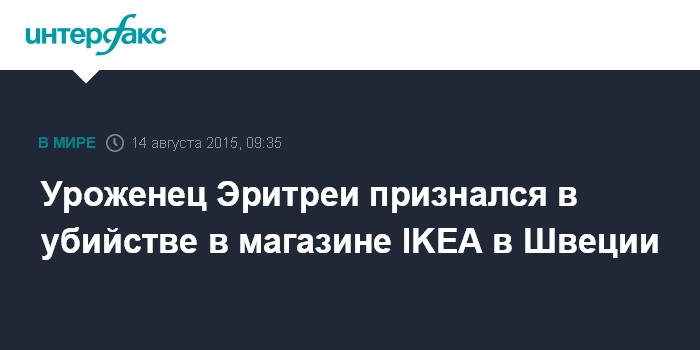 Москва. 14 августа. INTERFAX.RU - Беженец из Эритреи признался в совершении двух убийств в магазине IKEA в городе Вестерос, расположенном в 100 километрах от Стокгольма, сообщает The Local.
