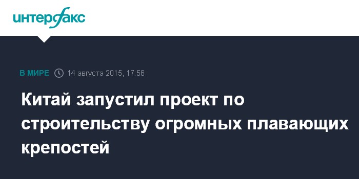 Москва. 14 августа. INTERFAX.RU - Две китайские компании - Hainan Offshore Industry и госкорпорация Jidong Development - запустили проект по созданию плавающих крепостей - платформ длиной до 3,2 км, на которых можно размещать объекты как военного, так и коммерческого назначения, пишет Financial Times.
