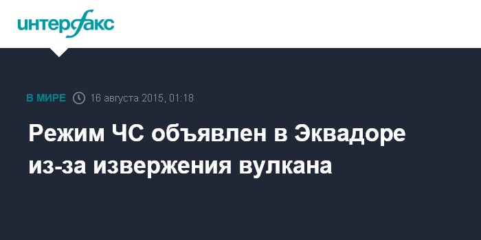 Режим ЧС объявлен в Эквадоре из-за извержения вулкана
