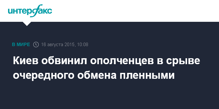 Москва. 16 августа. INTERFAX.RU - Освобождение украинских военнопленных перенесено из-за угрозы безопасности украинцев, находящихся у ополченцев, повторный процесс переговоров обмена пленными планируется провести в понедельник, сообщил советник главы Службы безопасности Украины Юрий Тандит по телефону в эфире телеканала "112" в воскресенье утром.
