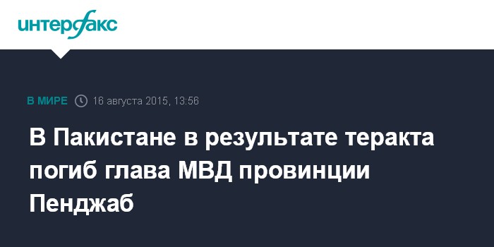 В Пакистане в результате теракта погиб глава МВД провинции Пенджаб