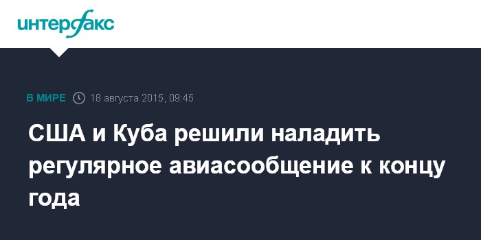Москва. 18 августа. INTERFAX.RU - США и Куба рассматривают возможность внедрения регулярного авиасообщения уже к декабрю этого года, пишет The Wall Street Journal со ссылкой на официальные источники.