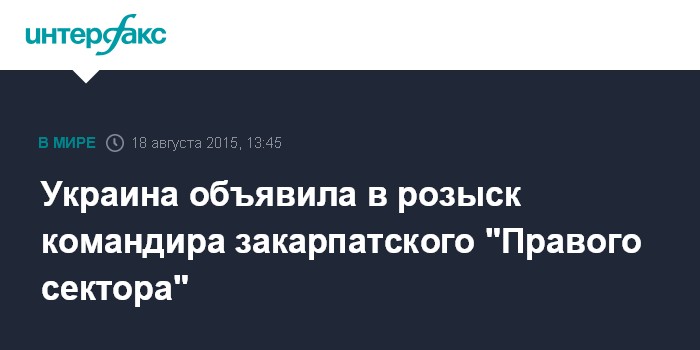 Москва. 18 августа. INTERFAX.RU - Командир закарпатского батальона Добровольческого украинского корпуса (ДУК) "Правый сектор" (признанная экстремистской и запрещенная в России организация - ИФ) Роман Стойка объявлен в розыск, говорится в сообщении, опубликованном во вторник на сайте МВД Украины.