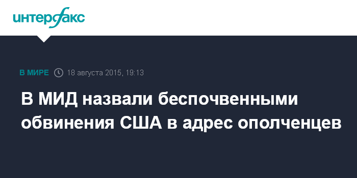 В МИД назвали беспочвенными обвинения США в адрес ополченцев