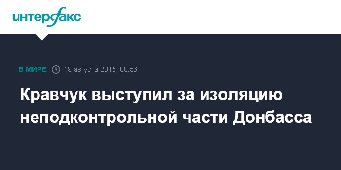 Москва. 19 августа. INTERFAX.RU - Контролируемые противостоящими Киеву вооруженными формированиями районы Донбасса должны быть полностью изолированы от остальной части Украины, считает первый президент Украины (1991-1994) Леонид Кравчук.