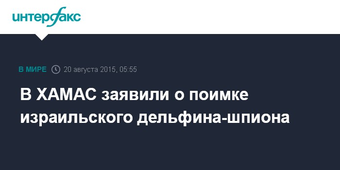 Москва. 20 августа. INTERFAX.RU - Представитель исламистского движения ХАМАС заявил о поимке дельфина-шпиона, засланного израильской армией, пишет The Independent.