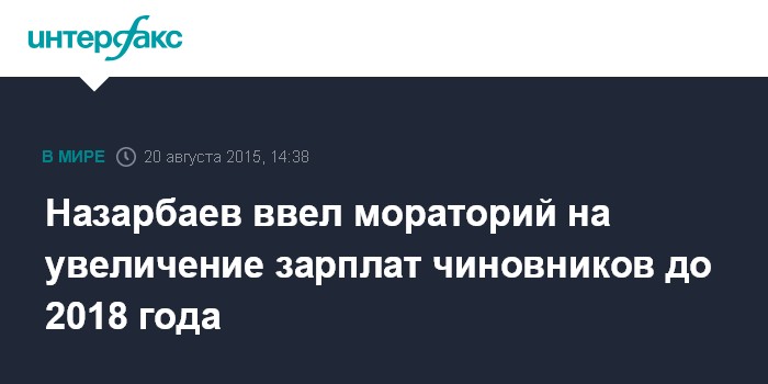Москва. 20 августа. INTERFAX.RU - Президент Казахстана Нурсултан Назарбаев заявил о введении моратория на расширение штатов и заработных плат чиновников в ближайшие три года.