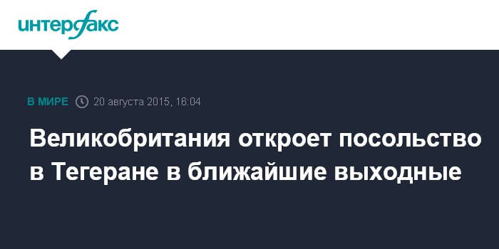 Москва. 20 августа. INTERFAX.RU - Посольство Великобритании в Иране возобновит свою работу уже в эти выходные, сообщает в четверг газета The Guardian.