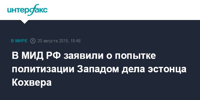 Москва. 20 августа. INTERFAX.RU - В Москве расценили реакцию Запада на приговор в отношении эстонского гражданина Эстона Кохвера, осужденного в РФ на 15 лет, как попытку политизировать уголовный процесс.
