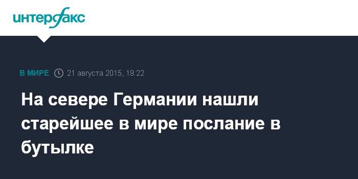 Москва. 21 августа. INTERFAX.RU - На немецком острове Амрум - на одном из Фризских островов - в бутылке обнаружено послание, датированное периодом между 1904 и 1906 годами, ставшее, по всей видимости, старейшим в мире, сообщает в пятницу агентство Associated Press.