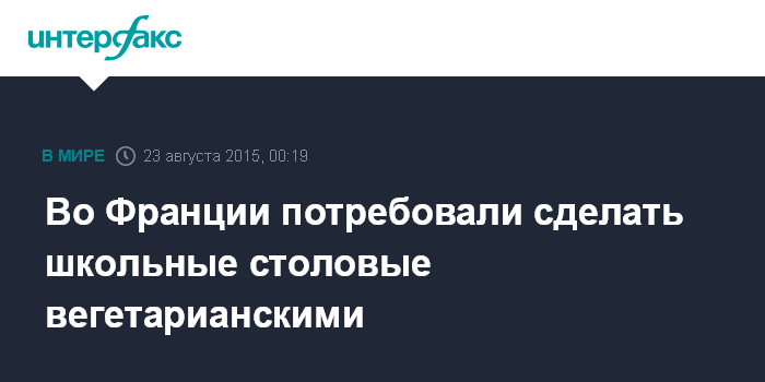 Москва. 23 августа. INTERFAX.RU - Французский депутат Ив Жего запустил кампанию по запрету употребления мяса в школьных столовых, сообщает BBC News.