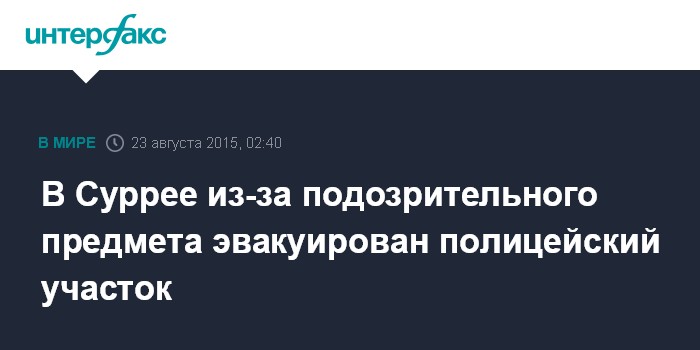 Москва. 23 августа. INTERFAX.RU - Полицейский участок в британском графстве Суррей был эвакуирован после обнаружения подозрительного свертка, пишет Evening Standard.