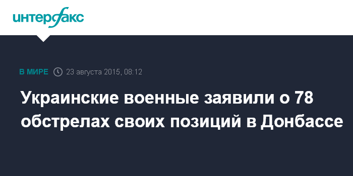 Москва. 23 августа. INTERFAX.RU - Позиции украинских военных в Донбассе в субботу были обстреляны 78 раз, в основном велся огонь из стрелкового оружия, сообщает пресс-центр силовой операции в фейсбуке в воскресенье утром.