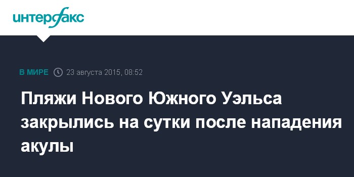 Москва. 23 августа. INTERFAX.RU - Пляжи в австралийском штате Новый Южный Уэльс закрылись на 24 часа после нападения акулы у побережья города Порт-Маккуори, пишет The Guardian.