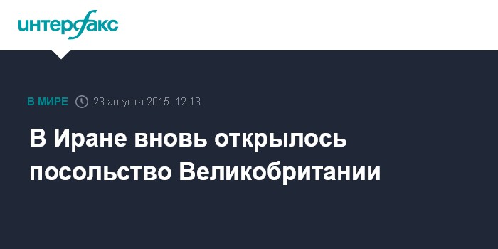 Москва. 23 августа. INTERFAX.RU - Глава МИД Великобритании Филип Хаммонд в воскресенье принял участие в церемонии возобновления работы британского посольства в Тегеране, одновременно возобновило работу иранское посольство в Лондоне, сообщает BBC. В церемонии приняли участие британские и иранские дипломаты.