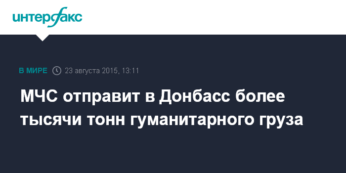 Москва. 23 августа. INTERFAX.RU - МЧС России формирует очередную, 37-ю колонну, с гуманитарной помощью для Донбасса, сообщает пресс-служба ведомства в воскресенье.