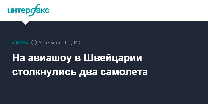 Москва. 23 августа. INTERFAX.RU - На северо-западе Швейцарии в кантоне Базель время авиашоу столкнулись два легких самолета Ikarus C42s, сообщает издание 20 Minuten.