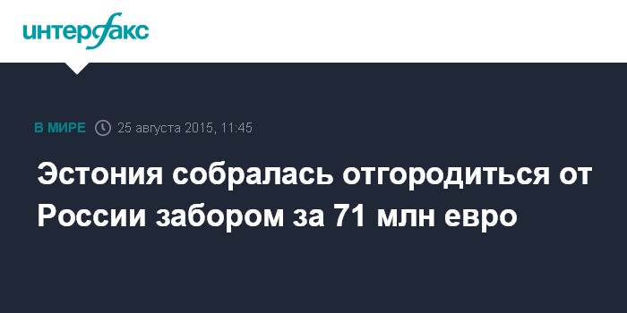 Москва. 25 августа. INTERFAX.RU - Департамент полиции и погранохраны Эстонии намерен, по меньшей мере, две трети сухопутной границы с Россией оборудовать забором высотой в 2,5 метра с целью предотвращения нарушений границы, сообщила во вторник газета Postimees.