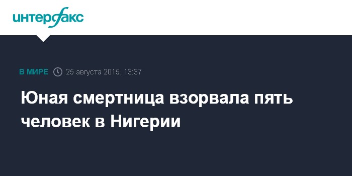 Москва. 25 августа. INTERFAX.RU - От рук террористки-смертницы во вторник утром погибли пять человек на остановке автобуса в городе Даматуру на северо-востоке Нигерии, сообщает агентство AP.