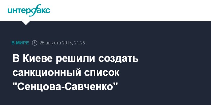 Москва. 25 августа. INTERFAX.RU - Глава МИД Украины Павел Климкин заявляет о необходимости создания санкционного списка тех россиян, кто "причастен к незаконному удерживанию украинцев в РФ, в том числе Олега Сенцова, Надежды Савченко".