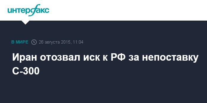 Москва. 26 августа. INTERFAX.RU - Четырехмиллиардный иск, который подал Иран к России за непоставку зенитных ракетных систем С-300, не является препятствием для подписания нового контракта, заявил "Интерфаксу" в среду на МАКС-2015 источник, знакомый с ситуацией.