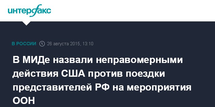 "Мы считаем неправомерными действия американских властей, которые под различными предлогами ставят препятствия для участия российских представителей в мероприятиях, проходящих в штаб-квартире Организации Объединенных Наций или под эгидой ООН", - сказал высокопоставленный российский дипломат "Интерфаксу" в среду.