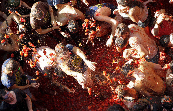 Москва. 26 августа. INTERFAX.RU - Более 20 тысяч человек приняли в среду участие в празднике Ла Томатина в испанском городе Буньоле недалеко от Валенсии, во время которого люди бросают друг в друга помидоры, сообщает агентство Associated Press.