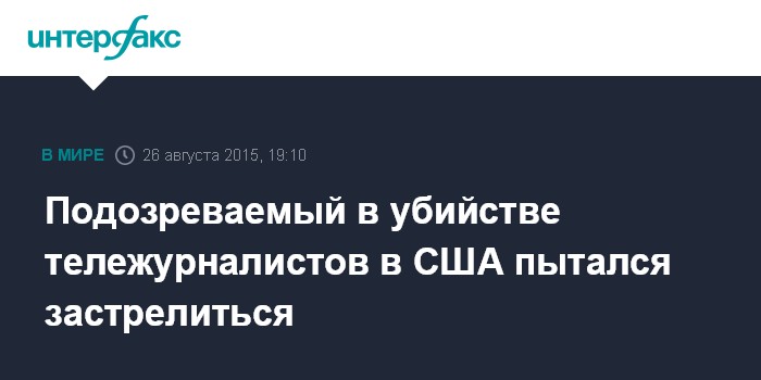 Москва. 26 августа. INTERFAX.RU - Подозреваемый в нападении и убийстве журналистов телестанции WDBJ7 (штат Вирджиния, США) намеревался покончить с собой, сообщает The Wall Street Journal.