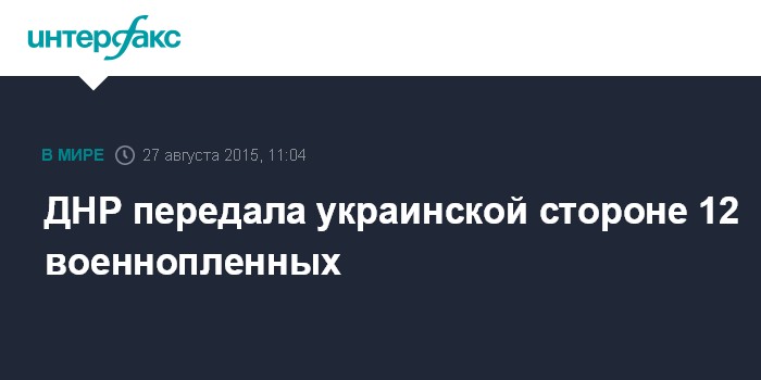 Москва. 27 августа. INTERFAX.RU - Самопровозглашенная Донецкая народная республика передала украинской стороне 12 военнопленных в рамках обмена по схеме "12 на 12", передает корреспондент "Интерфакса".