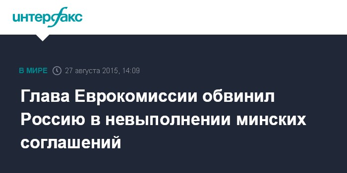 Москва. 27 августа. INTERFAX.RU - Российская сторона не выполняет свою часть минских договоренностей по урегулированию конфликта на востоке Украины, заявил председатель Еврокомиссии Жан-Клод Юнкер.