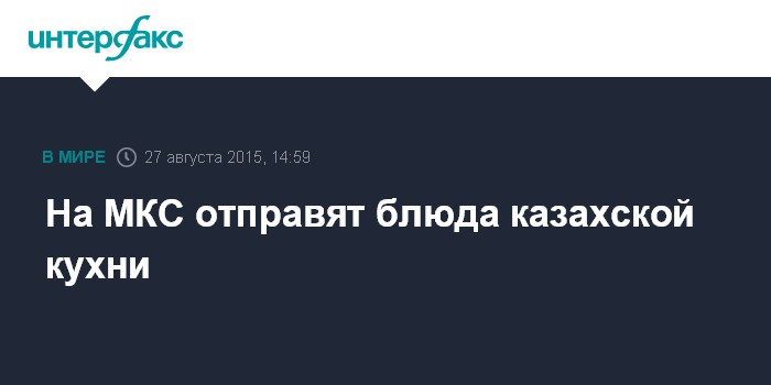 Москва. 27 августа. INTERFAX.RU - Экипаж корабля "Союз ТМА-18М" доставит на МКС разработанные казахстанскими учеными блюда национальной кухни.
