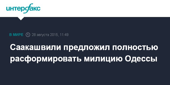 Москва. 28 августа. INTERFAX.RU - Глава Одесской областной государственной администрации Михаил Саакашвили выступил за полный роспуск и реорганизацию городской милиции Одессы в связи с задержанием ее начальника при получении взятки.