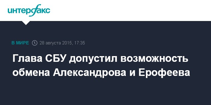 Москва. 28 августа. INTERFAX.RU - Руководитель Службы безопасности Украины Василий Грицак не исключил возможности обмена Евгения Ерофеева и Александра Александрова на граждан Украины, задержанных в РФ.