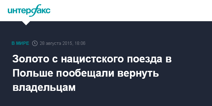 Со своей стороны, адвокаты поляка и немца, которые якобы обнаружили немецкий бронепоезд времен Третьего рейха, предупредили, что их клиенты будут претендовать на 10% от стоимости груза.